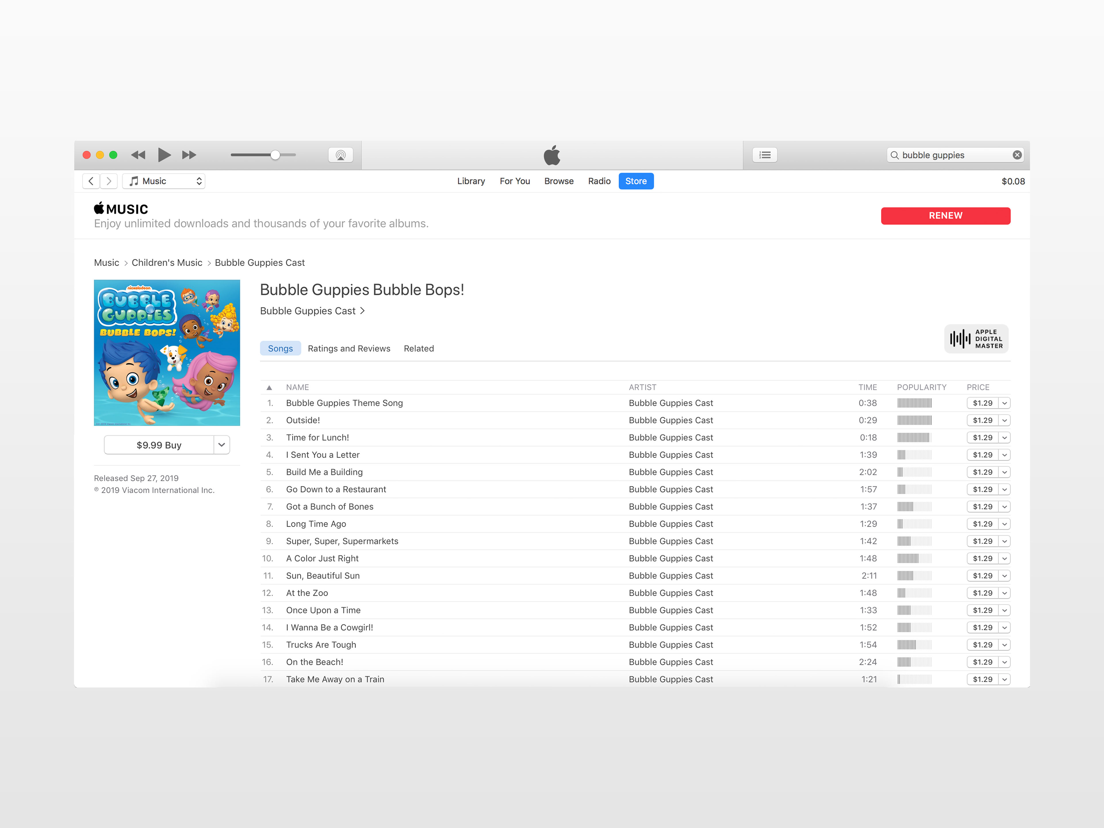 Revised, resized and reformatted main marketing art for Noggin's television shows to be featured on streaming platforms Roku and Apple TV. Also, designed music covers for shows on Nick Jr. to be streamed on iTunes.